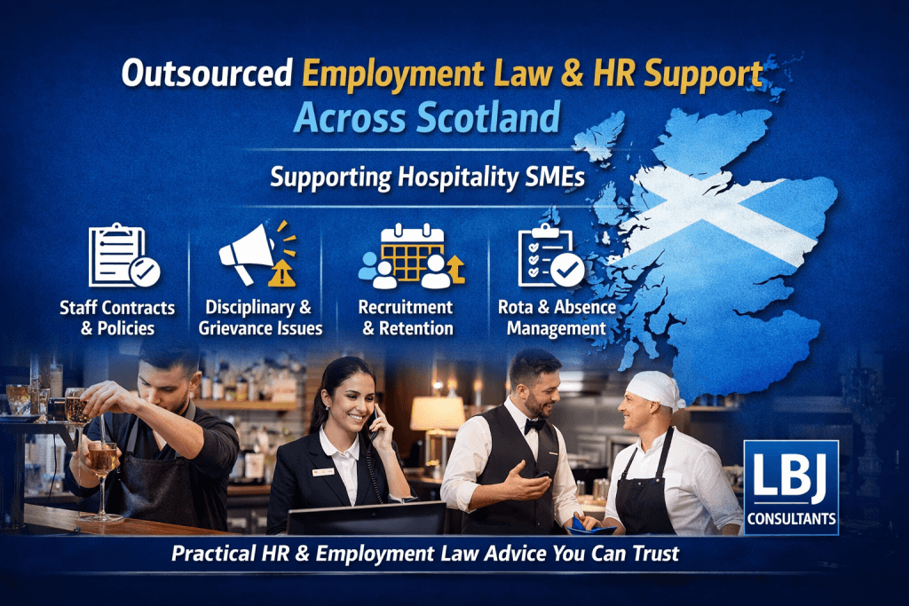 At LBJ Consultants, we offer flexible options depending on your stage, size, and business needs by providing outsourced and retained Employment Law & HR support for SMEs across Scotland.
